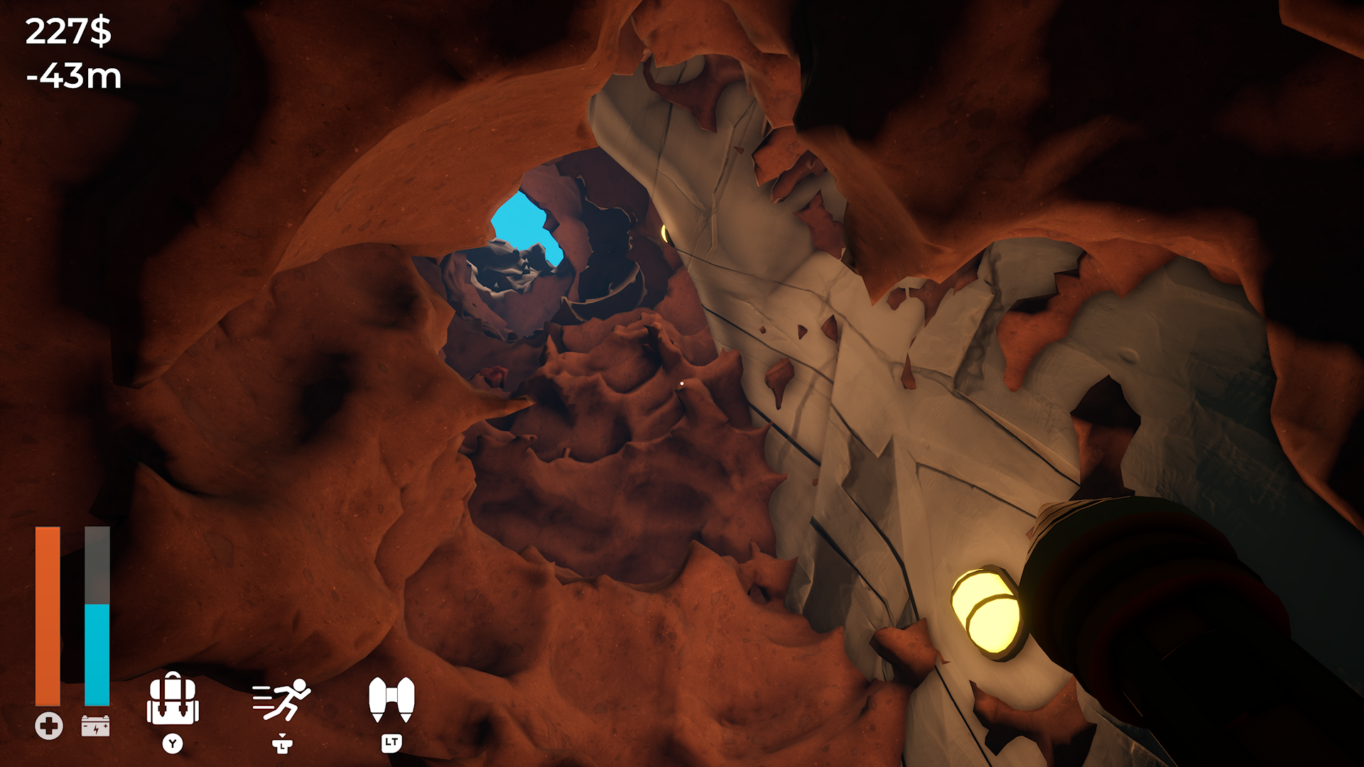 Kupujemy dom z działką, w której według ogłoszenia zakopany jest skarb. Dostajemy urządzenie do kopania i lecimy. Wydobywamy materiały takie jak kamień, węgiel, żelazo czy złoto i sprzedajemy online. Za pieniądze doładowujemy baterię w urządzeniu, leczymy się i kupujemy nowy sprzęt. Ulepszyć możemy wielkość łopaty, zapas energii i plecak na zasoby. Twórcom nie chciało chyba się robić jakiegoś ambitnego systemu wspinaczki, więc za prawie darmo kupujemy plecak odrzutowy działający tylko do 2 metrów nad ziemią, ale pod ziemią bez limitu. I kopiemy. Znajdujemy jakiś skarb. Kopiemy. Skała? To dynamitem i dalej kopiemy. Nie ma tu żadnej filozofii, a gra jest bardzo krótka. Przy drugim podejściu można zdobywać trofea za specyficzne osiągnięcia.