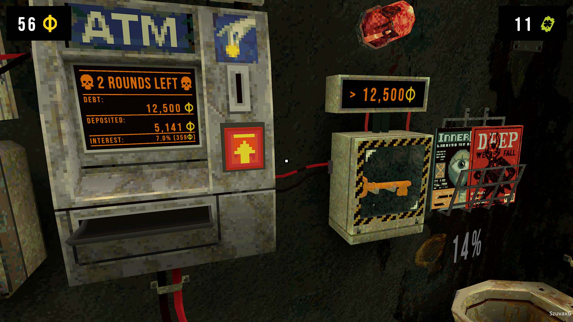 Pierwszym co rzuca się w oczy, jest pikselowa, mroczna grafika. Wygląda to dosyć unikalnie, chociaż czasami trudno jest rozpoznać przedmiot, na który się patrzy. Jednak to wszystko pasuje do nastroju tej gry. Trafiamy do klaustrofobicznego pomieszczenia, gdzie naszym jedynym zadaniem jest grać na automacie i zdobywać pieniądze, którymi spłacamy nasz dług. Towarzyszą nam brudna toaleta i niezidentyfikowane kawałki psującego się mięsa. Od razu wiadomo, że głos przemawiający do nas nie żartuje i przyjdzie nam grać o nasze życie. Trochę taki mniej ochotniczy Squid Game.