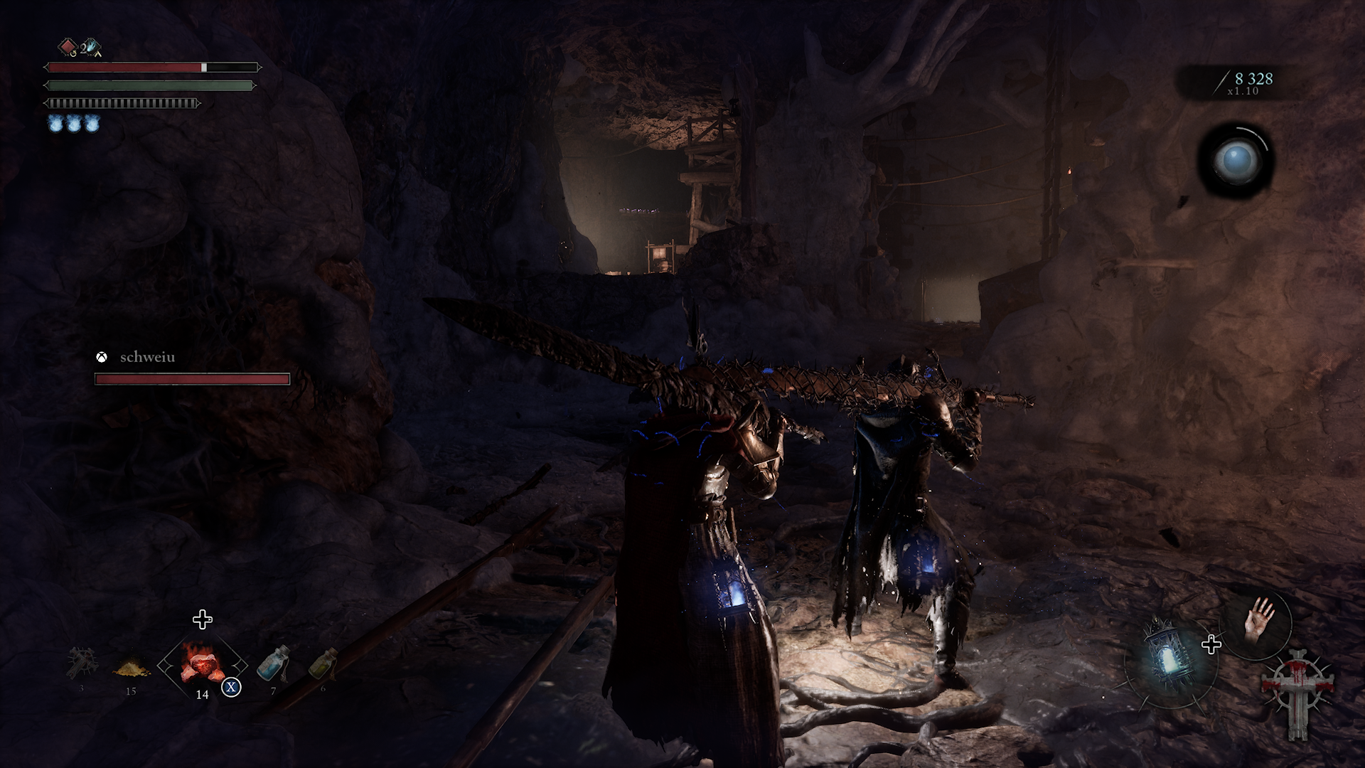 Pomimo określenia „mroczny” na wstępie, świat ten jest sielanką w porównaniu do Umbralu. O co chodzi? W grze występują dwa światy, które istnieją równolegle i czasami siebie przenikają. Na samym początku rozgrywki dostajemy w swoje posiadanie latarnię umbralu. Ten przedmiot pozwala nam na podróżowanie po świecie umarłych. Możemy jednak w nim spędzić tylko określoną ilość czasu, zanim potężne istoty egzystujące w nim, nie zaczną się nami interesować. Mniejsi przeciwnicy pojawiają się co chwilę, ale podróże w Umbralu są jednak konieczne, aby dostać się do części lokacji. Kamienne mury w Axiom, w Umbralu mogą być kupami gruzu. Te połączenie światów odróżnia trochę tą grę od innych souls-like. A tak to klasycznie. Świat pełen pułapek, wrogów.