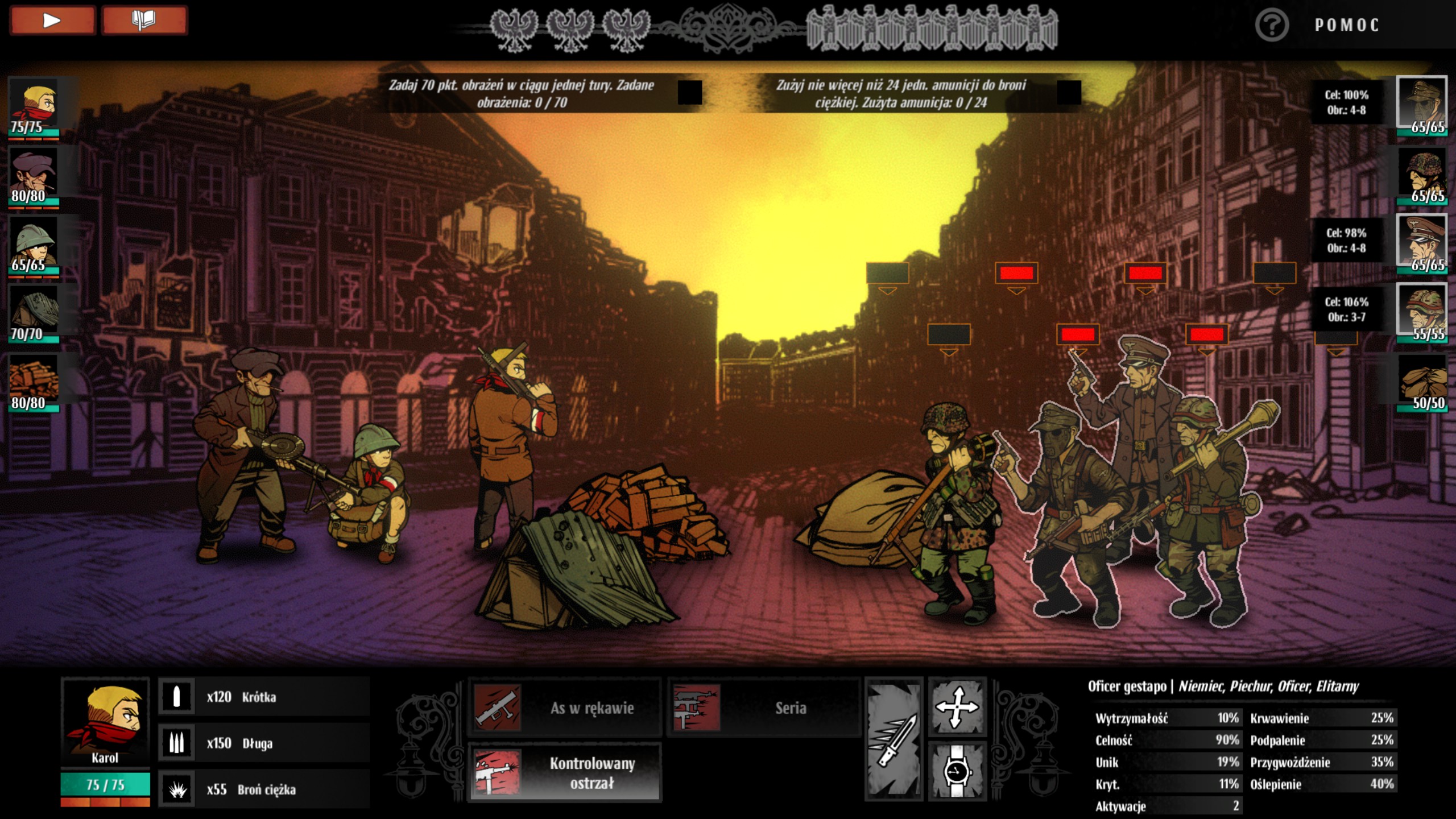 Gra wygląda bardzo podobnie do Darkest Dungeon i jest wyraźnie inspirowana nim. Za loch służy nam jednak okupowana Warszawa. Dowodzimy bojówką powstańców i staramy się przegonić szkopów z naszego miasta. Rozkazy z głównego dowództwa nie dają nam zbytnio wyboru jak chcemy grać. Rozkaz to rozkaz. Same misje teoretycznie różnią się między sobą. Walczymy z różnymi przeciwnikami i bossami. Czasami mamy zdobyć jakieś miejsce. Innym razem zbieramy zapasy. Na każdym kroku czeka nas jednak strzelanina, bo wrogów jest pełno. Ale wszystko i tak sprowadza się do strzelanin.